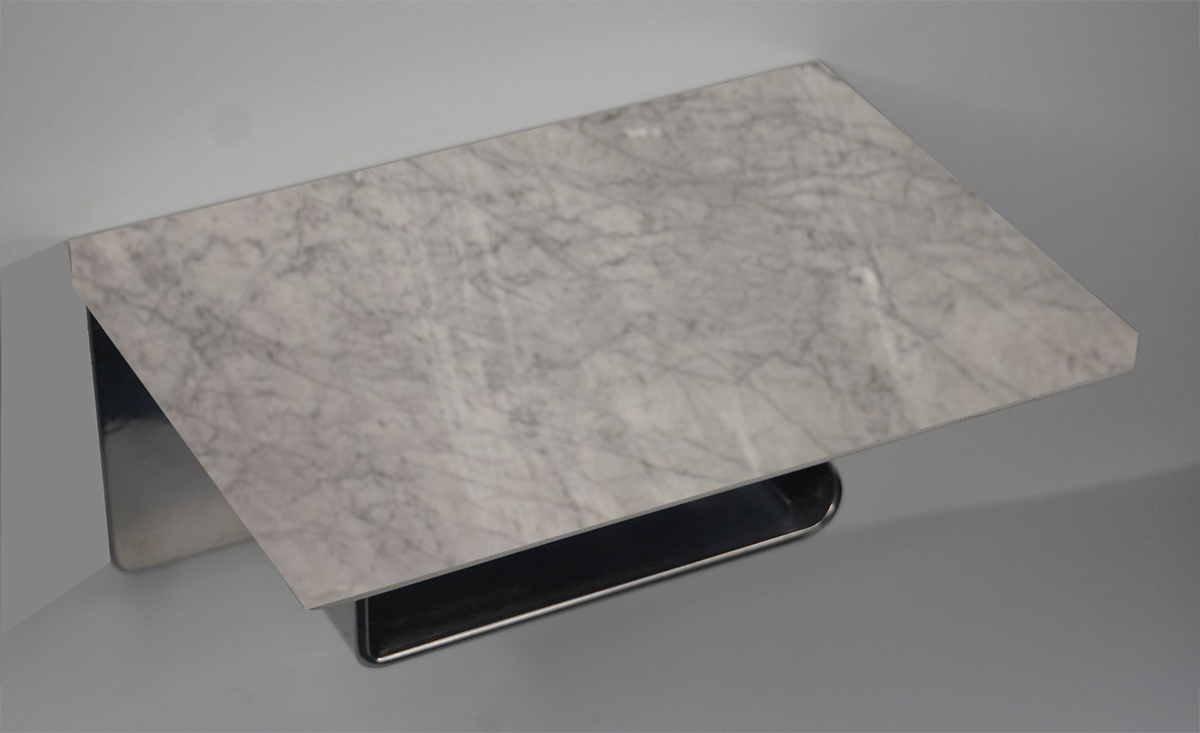 White Carrara - Polished Chrome $99.00 Toilet Paper Holder Polished Chrome with Polished White Carrara Marble Stone In Stock Finish In Stock