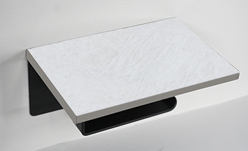 Quarzo Bianco - Matte Black $99.00 Toilet Paper Holder Matte Black with Polished Quarzo Bianco Porcelian Stone In Stock Finish In Stock